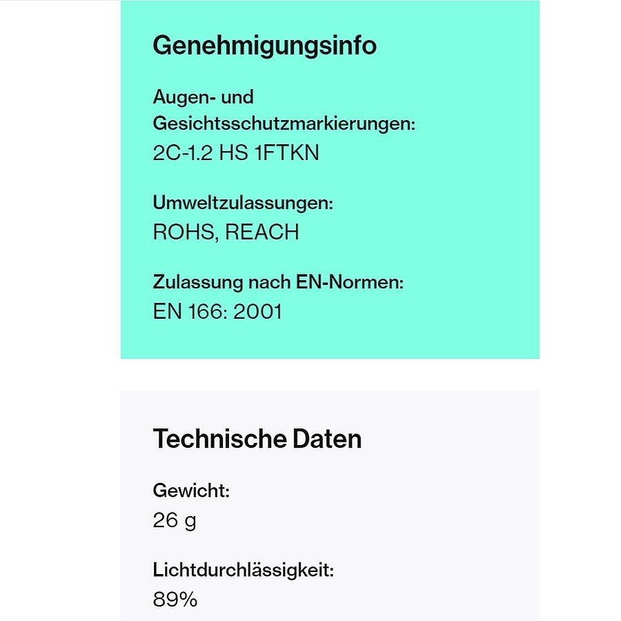 Augen- und Gesichtsschutzmarkierungen: 2C-1.2 HS 1FTKN