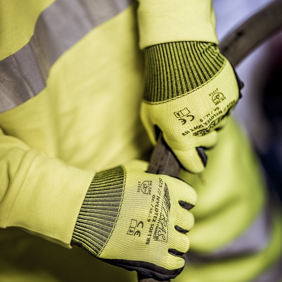 Der Strickbund gewährleistet einen sicheren Sitz und verhindert das Eindringen von Schmutz. Zudem erhöht die auffällige neongelbe Farbe die Sichtbarkeit und somit die Sicherheit am Arbeitsplatz. Der Handschuh erfüllt die Anforderungen der EN 388 mit den Leistungsstufen 2 (Abriebfestigkeit), 1 (Schnittfestigkeit), 3 (Weiterreißfestigkeit) und 1 (Durchstichfestigkeit), was ihn ideal für Tätigkeiten in Handwerk, Werkstatt, Gartenbau und vielen weiteren Bereichen macht.