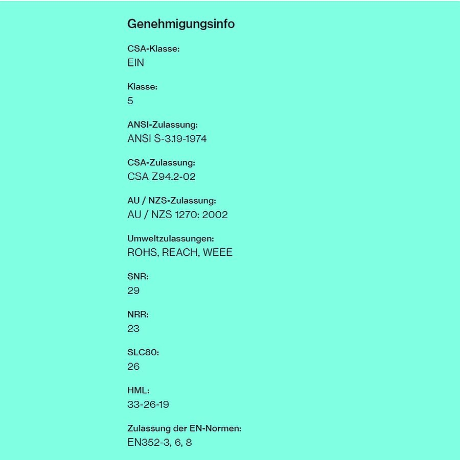 - Zertifizierung: EN352-3, 6, 8