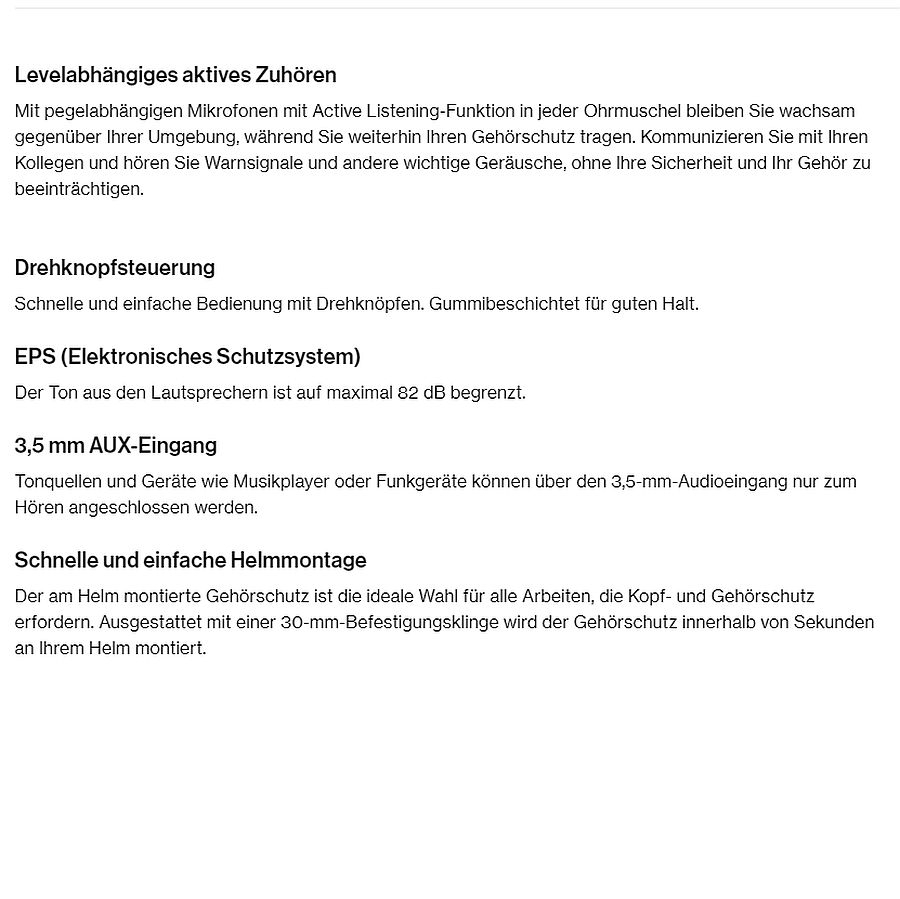 Eigenschaften "47102 Hellberg Gehörschutz Active Helmmontage"