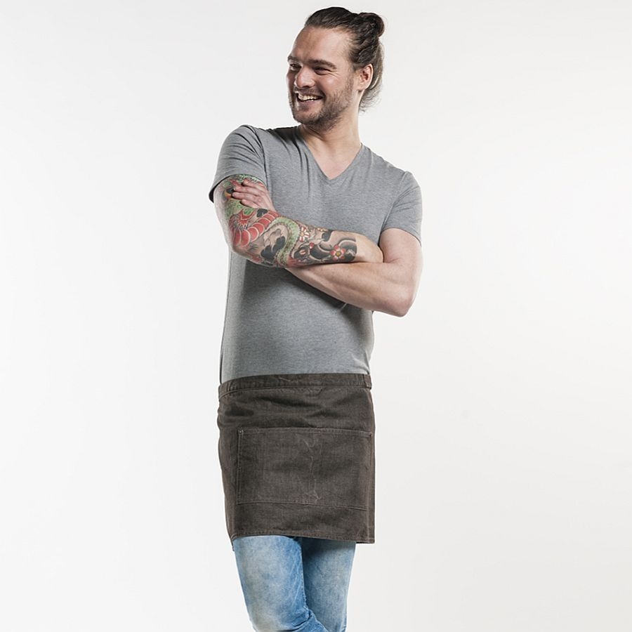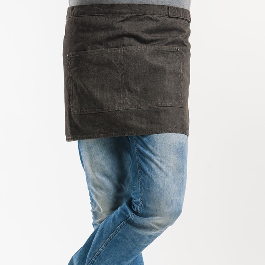 Die Pure Denim Kollektion zeigt Stärke und Charakter … Daher ist sie die perfekte Verschmelzung von Mode und Arbeitskleidung. Richtiger Denim lebt! Häufiges Waschen lässt den Stoff aufleben. Waschen und behandeln Sie ihn ganz nach eigener Vorliebe und schaffen Sie sich auf diese Weise eine ganz eigene Identität. Zeigen Sie Mut zum Kombinieren und finden Sie das Modell, das Ihnen wie auf den Leib geschnitten ist! Die Pure-Denim-Artikel sind nicht für Industriewaschmaschinen geeignet. Alle lieben Denim! Diese Modelle sind in Erdtönen erhältlich: Grün, Grau, Braun und Mud. Diese robuste kurze Schürze hat zwei Taschen in der Mitte. Die zusätzliche Schlaufe am Band bietet eine praktische Lösung z. B. für ein Chaud Devant Küchentuch.