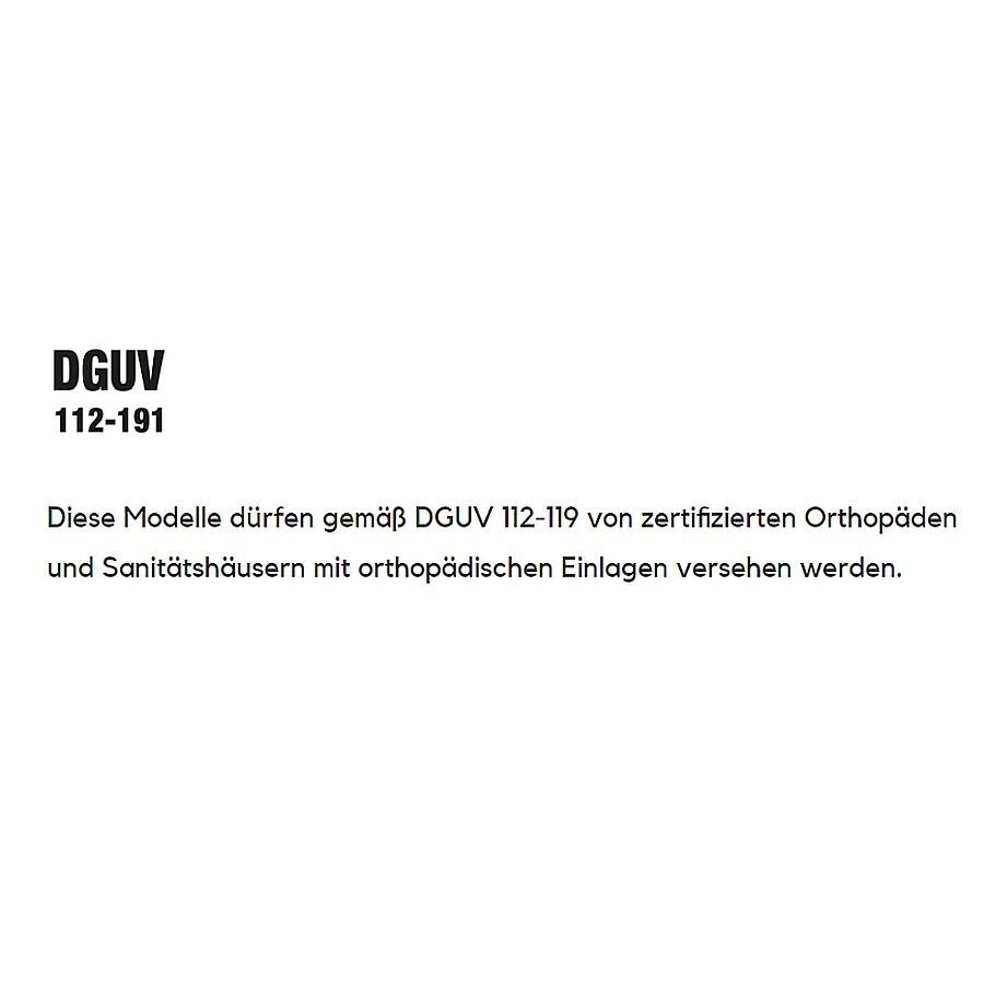 - Plus: metallfrei, ESD, angenehme Schaft- und Laschenpolsterung, Stoßschutz aus Gummi im Zehenbereich, DGUV 112-191,