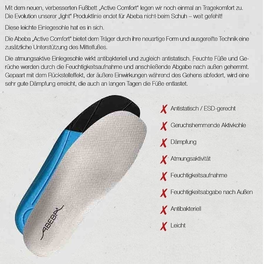 Herstellerinformationen: ABEBA Spezialschuh-Ausstatter GmbH, Schlackenbergstrasse 5, 66386 St. Ingbert, abeba@abeba.de