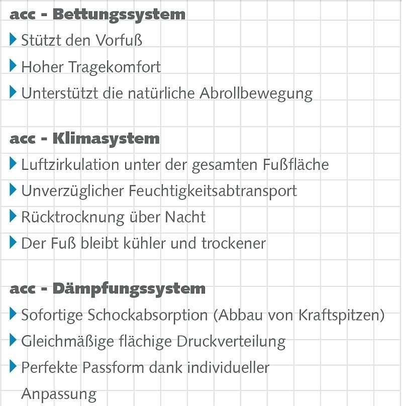 - Auswechselbare acc Wave Einlegesohle mit Dämpfungs-, Klima- und Bettungssystem.
