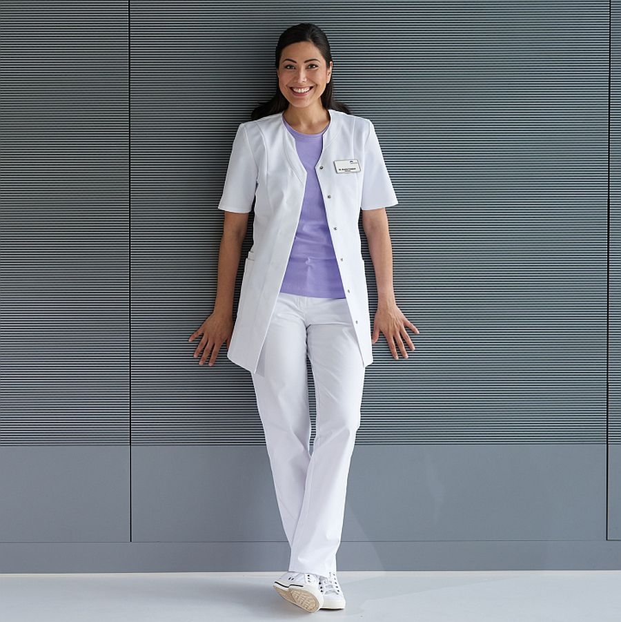 Entdecken Sie den BP® Leichter Kasack 1710-241 für Damen – die perfekte Kombination aus Funktionalität, Komfort und modernem Design für den anspruchsvollen Berufsalltag in Medizin und Pflege. Gefertigt aus superleichtem Stretchgewebe, bietet dieser Kasack optimalen Tragekomfort und uneingeschränkte Bewegungsfreiheit. Der 1/2-Arm ist mit farbigen Stretcheinsätzen versehen, die nicht nur optische Akzente setzen, sondern auch die Flexibilität erhöhen. Der V-Ausschnitt mit kleinem Stehkragen aus farbigem Strick verleiht dem Kasack eine moderne Note, während die verdeckte Druckknopfleiste mit einem sichtbaren Druckknopf für ein schlichtes und professionelles Erscheinungsbild sorgt. Zwei geräumige Seitentaschen mit farbigen Stretcheinsätzen bieten ausreichend Platz für wichtige Utensilien; eine davon ist mit einer Smartphonetasche und die andere mit einer Schlüsselschlaufe ausgestattet, um Ihre Arbeitswerkzeuge stets griffbereit zu haben. Die durchdachten Teilungsnähte formen eine schmale Silhouette und unterstreichen die feminine Passform dieses Kasacks.Moderner Ausschnitt, kleiner Stehkragen, zum Knöpfen.Flexiblen Stretcheinsätze.STRETCH-Gewebe.Modern Fit.1/2-Arm mit farbigem Stretcheinsatz.V-Ausschnitt, kleiner Stehkragen aus farbigem Strick.Verdeckte Druckknopfleiste mit 1 sichtbaren Druckknopf.2 geräumige Seitentaschen mit farbigen Stretcheinsätzen.Eine mit Smartphonetasche und eine mit Schlüsselschlaufe.Teilungsnähte für eine schmale Silhouette.Geeignet für industrielle Waschverfahren nach ISO 15797.Größen: XSn - 3XLnTextilkennzeichnung: 49% Baumwolle | 48% Polyester | 3% ElastolefinGewebegewicht: ca. 200 g/m² Wasch- und Pflegehinweis: waschbar bei 95°C | Trockner geeignet | bügeln mit mittlerer Einstellung