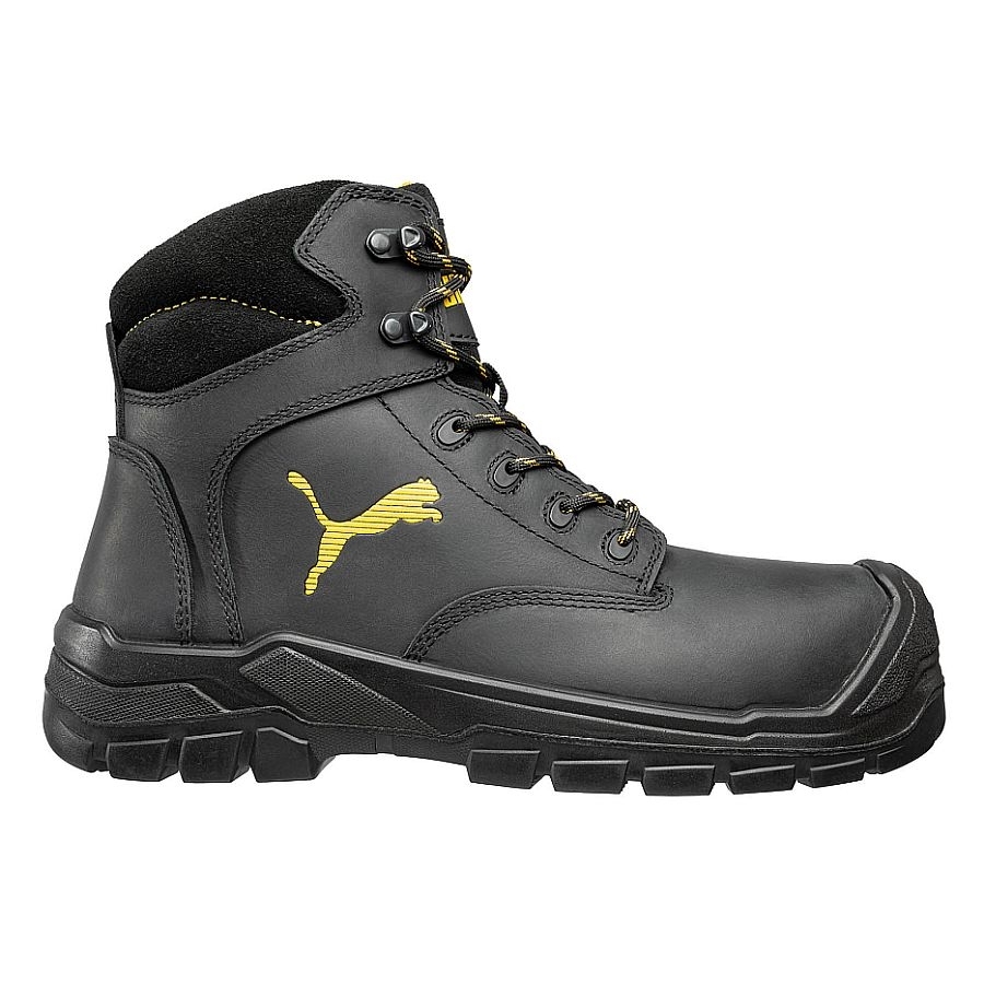 Klassischer Outdoor-Look verbunden mit effizienter Sicherheit. Die neuen SCUFF CAPS EVO von PUMA SAFETY zeichnen sich mit ihrer Fiberglaskappe und dem BreathActive Funktionsfutter als leichte und atmungsaktive, aber durch den 17 cm hohen Schaft und den FAP Durchtrittschutz, als sehr sichere Sicherheitsschuhe aus. Mit dem Obermaterial aus einem hochwertigen, geölten Vollrindleder in zeitlosem schwarz bleibt mit dem CONQUEST BLK CTX HIGH auch bei gewerblichem Einsatz ein modebewusster Look im Mittelpunkt. Außerdem ist er mit einer atmungsaktiven und wasserabweisenden COA.TEX Membran ausgestattet. Die SCUFF CAPS EVO Gummisohle bleibt gegen Hitze bis zu 300°C beständig und ist selbst auf unbefestigtem Untergrund rutschfest.Fußbett: evercushion® BA+Geschlecht: MännerSchaft: hochwertiges geöltes VollrindlederSchuhtyp: StiefelSchutz: Fiberglaskappe, metallfreier, flexibler FAP®-DurchtrittschutzSicherheitsklasse: S3Sohle: SCUFF CAPS EVO - PU/Gummisohle - 300°C hitzebeständig, rutschfest auch auf unbefestigten Untergründen, selbstreinigendEinsatzgebiete: Bau, HandwerkMaterial: VollrindlederEigenschaften: Durchtrittschutz, Hitzebeständig, Wasserdicht, MembranPlus: seitlicher YKK-Reißverschluss mit geschlossener Staublasche, extra hoher Schaft (ca. 17cm), TPU Fersenschutz und Kick-Off im FersenbereichObermaterial: Rindleder, VolllederFutter: Funktionsfutter mit atmungsaktiver und wasserabweisender COA.TEX® MembranCE EN ISO 20345:2011 S3 WR HRO SRC
