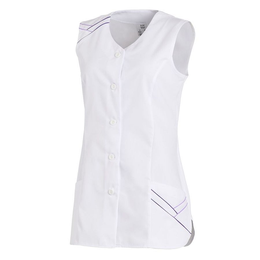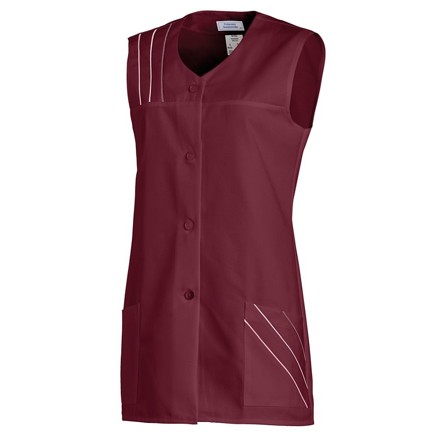 Ärmelloser Leiber Hosenkasack 04/706 für Damen mit geschwungenem V-Ausschnitt. Dieser leicht taillierte Damenkasack ist aus einem klassischen Mischgewebe mit hochwertigen Webstreifen gefertigt und ist somit robust und langlebig. Druckknopfverschluss mit Designknöpfen.Geschwungener V-Ausschnitt.2 Seitentaschen und 1 Brusttasche.Aufwendig verarbeitet mit Webstreifen und unifarbenen Besätzen.Leicht tailliert geschnitten und figurbetonend. Material Eigenschaften Leiber Damenkasack 04706:Textilkennzeichnung: 65% Polyester, 35%% Baumwolle Gewebegewicht: ca. 200g/m² Zertifiziert nach Öko-Tex Standart 100 für schadstoffgeprüfte TextilienMaterialeigenschaften: robust, pflege- und bügelleicht, Industriewäsche-geeignet, chlorecht,Wasch-/ Pflege Tipps: kochfest bis 95°C, Trockner geeignet, mäßig heiß bügeln (2 Punkte)